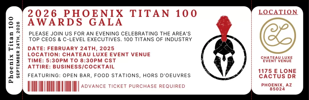 The Phoenix Titan 100 program will recognize the area’s most accomplished business leaders in their industry using criteria that includes demonstrating exceptional leadership, vision, and passion.
